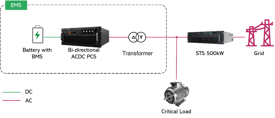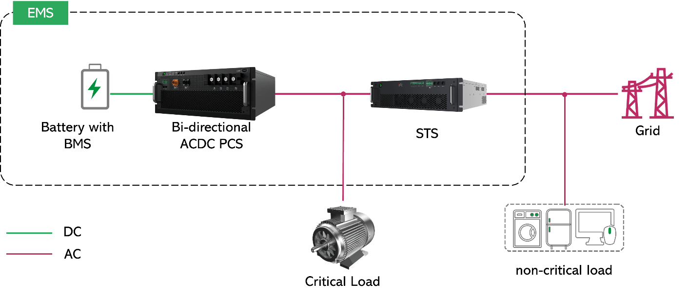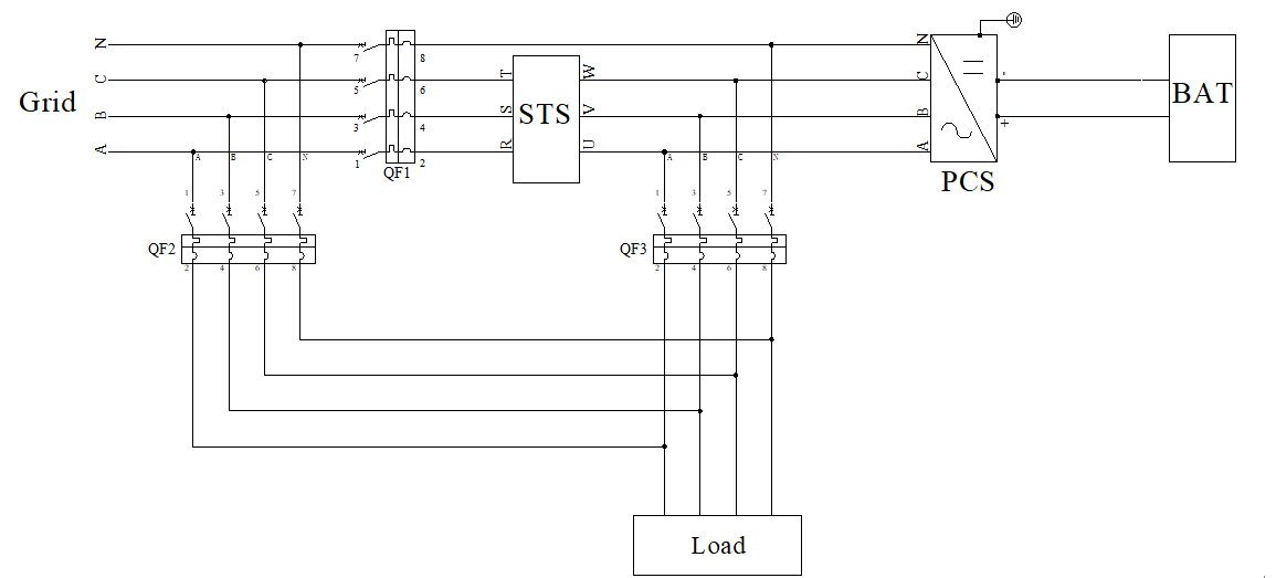 为了让储能系统能为重要负载提供不间断的后背电源,必须引入能够以毫秒级速度响应电网状态的智能设备——静态切换开关STS(Static Transfer Switch)。