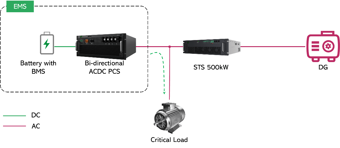 受控原则:在有些场景,市电只是后备电源,且EMS通过对PCS的充放电策略进行控制能确保STS不会过载运行,这时也可以将STS的容量缩减成PCS的充电功率。